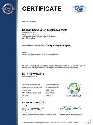 “전장용 품질 경영시스템 IATF-16949 인증”을